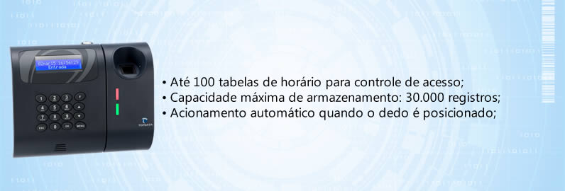 • Taxas: FRR: 1/1.000 (taxa de falsa rejeição); FAR: 1/100.000 (taxa de falsa aceitação). Número de usuários: até 10.000 usuários;